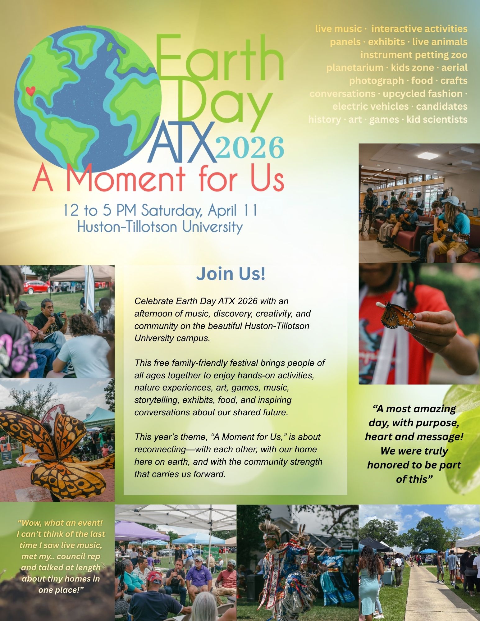 Celebrating 150 as Austin's first institution of higher learning, Huston-Tillotson University features a beautiful campus in East Austin between 7th and 11th Streets just off of I-35. Sustainability at HT includes academic programs, student activities, campus projects and community engagement. With its central location and interconnected indoor and outdoor, HT is the perfect location for Earth Day ATX!